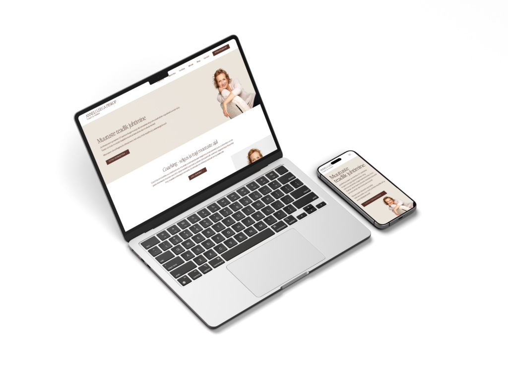 Anneli Leega on coach ja mentor, kes toetab inimesi muutuste ja sisemise selguse teekonnal. Koduleht sai loodud nii, et see oleks toetav ruum ka digitaalsel kujul – läbimõeldud, rahulik ja kutsuv. Kujunduses on kasutatud loodusest inspireeritud värve ja detaile, mis peegeldavad Anneli tööviisi – pehmelt suunavat ja ruumi andvat.
